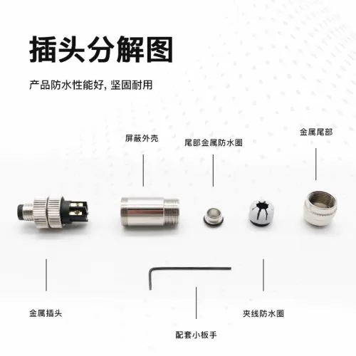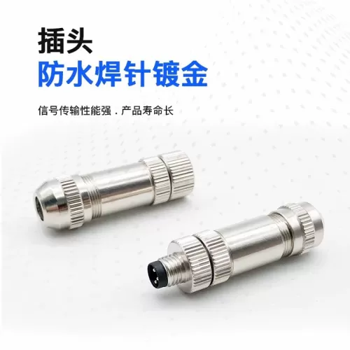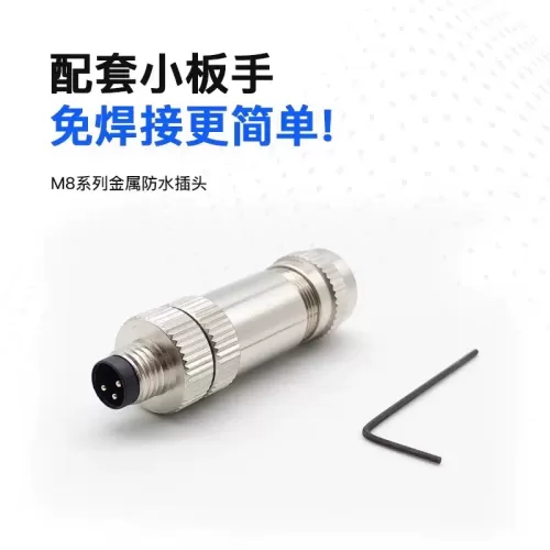M8连接器3芯4芯圆形金属传感器屏蔽组装式防水IP67免焊接航空插头
