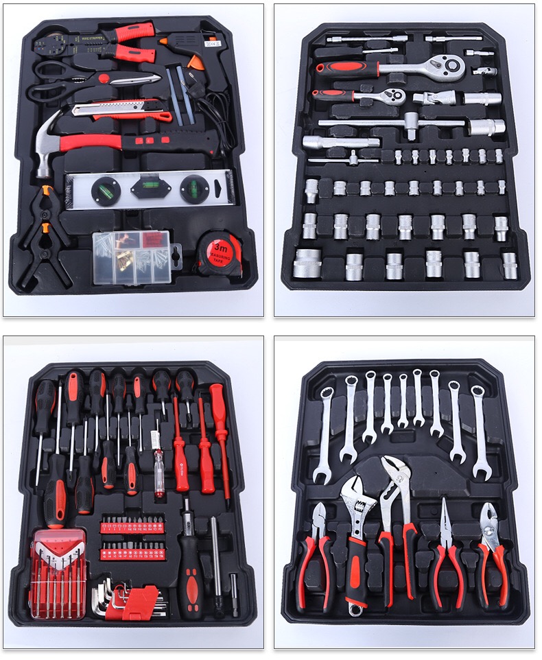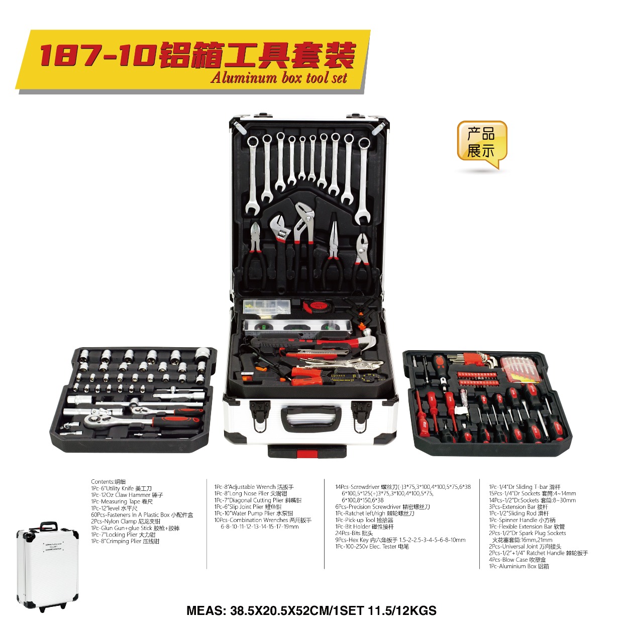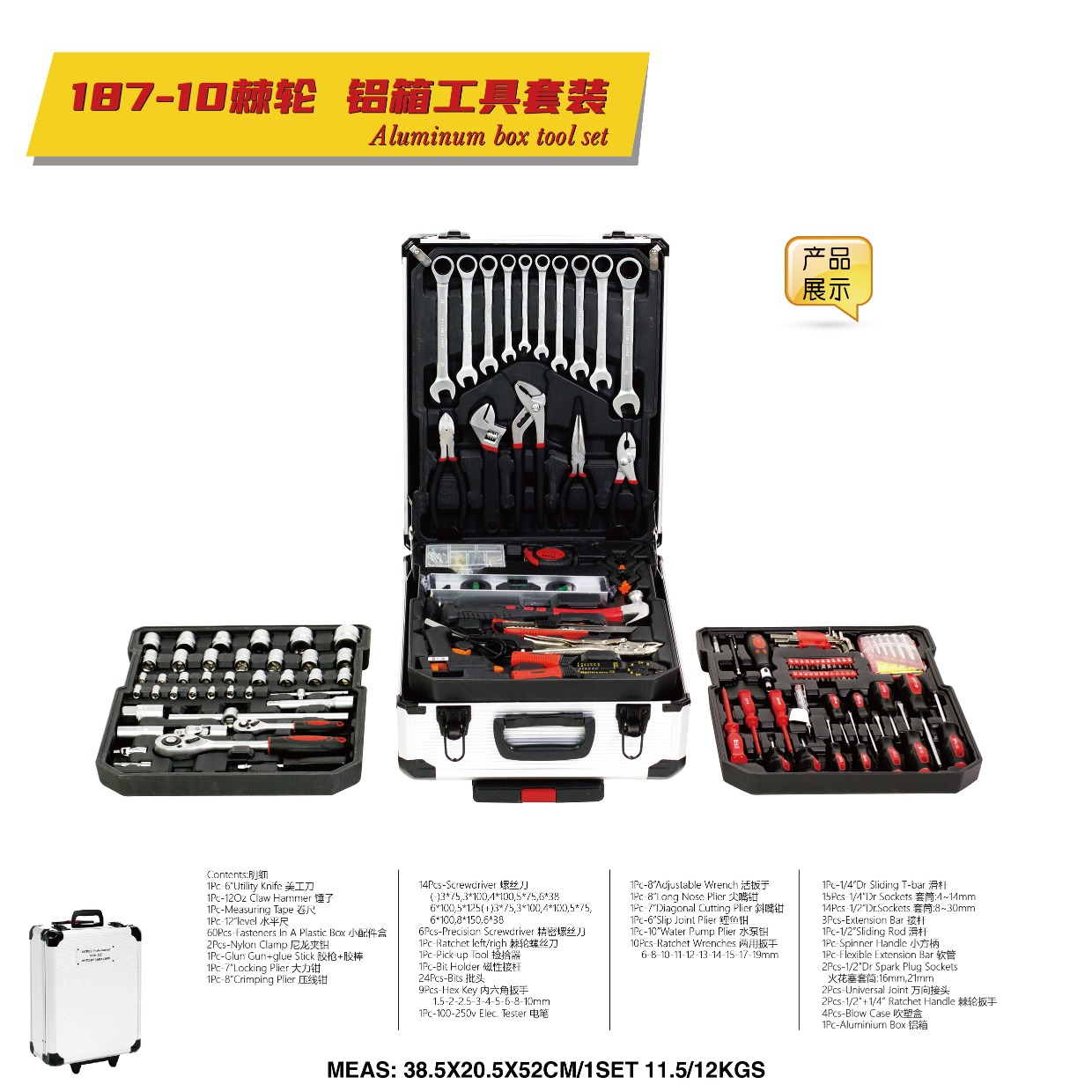 碳钢187件家用五金工具组合套装汽修机修铝制拉杆箱套筒扳手
