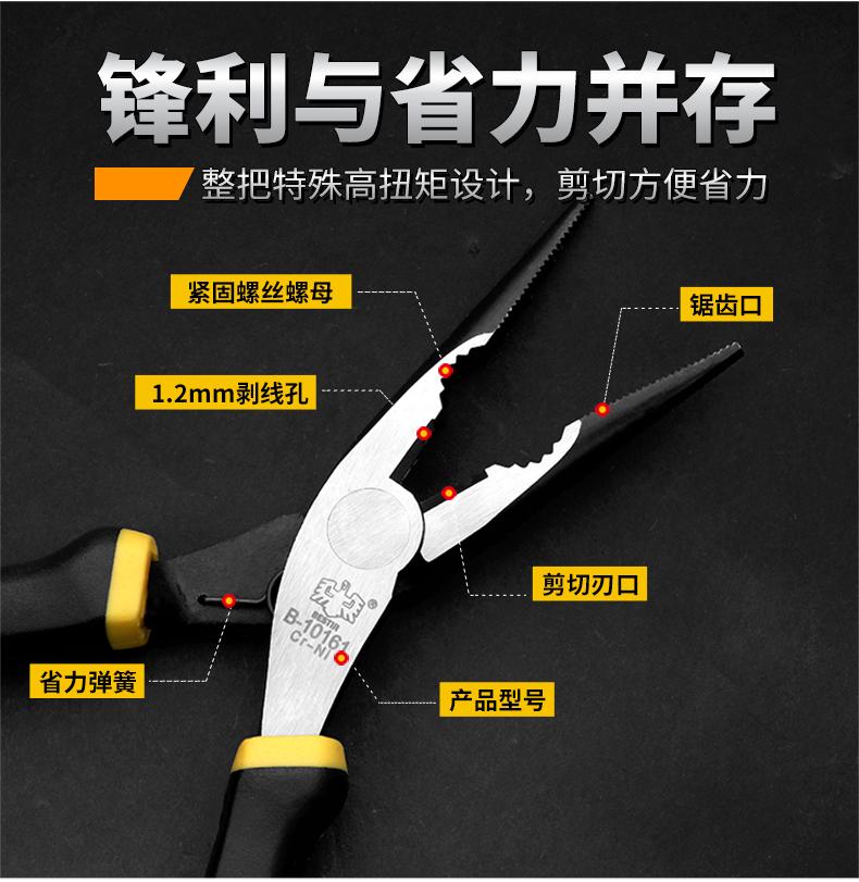 鹰之印 尖嘴钳6寸8寸多功能五金工具电工钳子尖头尖咀钳子针嘴钳