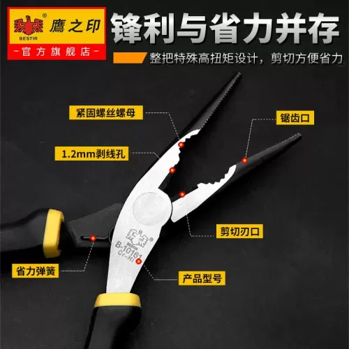 鹰之印 尖嘴钳6寸8寸多功能五金工具电工钳子尖头尖咀钳子针嘴钳